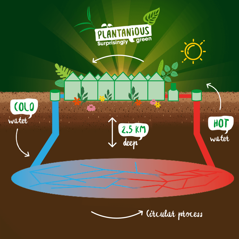 Wij maken gebruik van geothermie (aardwarmte), waarvoor wij zijn aangesloten bij het aardwarmteproject ‘Nature’s Heat’. Zo kunnen wij onze kas voor 100% verwarmen door de op 2,5 km diepte liggende warmtebron aan te boren. Dat betekent dat wij onze kas verwarmen zonder CO2-uitstoot, iets wat nog uniek is in de tuinbouw. Daar zijn wij dan ook met recht trots op!